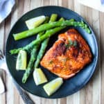 Salmon goes well with almost any side dish! Besides asparagus, try Sautéed Green Beans With Lemon & Garlic, Air Fryer Carrots, Cabbage Stir-Fry (especially if you brush the salmon with Honey Teriyaki Sauce) or Sautéed Beet Greens.