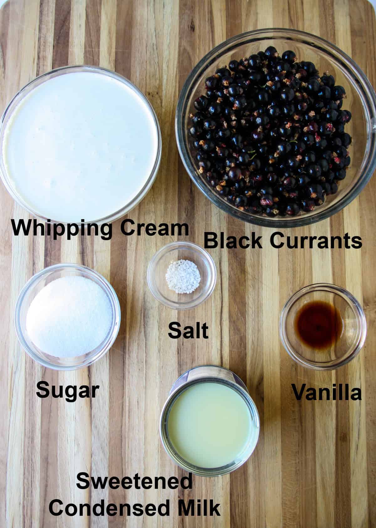 - Black currants: I hope that you can get your hands on some black currants, and I'm thinking that you have, since you landed on this recipe. However, this ice cream base works for almost any other fresh fruits or berries. Blueberries, strawberries, raspberries, or blackberries are great choices. If you make this ice cream recipe with any of those sweeter fruit choices, you may want to reduce the amount of sugar.