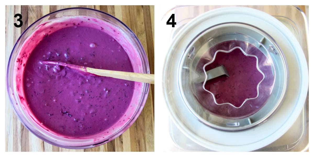 - In a large bowl, combine the cream, cooled black currant puree, sweetened condensed milk, vanilla, and salt. Mix well to combine.
