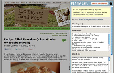 We have tried to make importing recipes from the web extremely easy. Currently you can import recipes by searching directly from Plan to Eat, copying-and-pasting a recipe’s URL, or using our import bookmarklet while browsing the web. However there are some sites, especially blogs, where importing recipes can be a bit of a pain — until today!