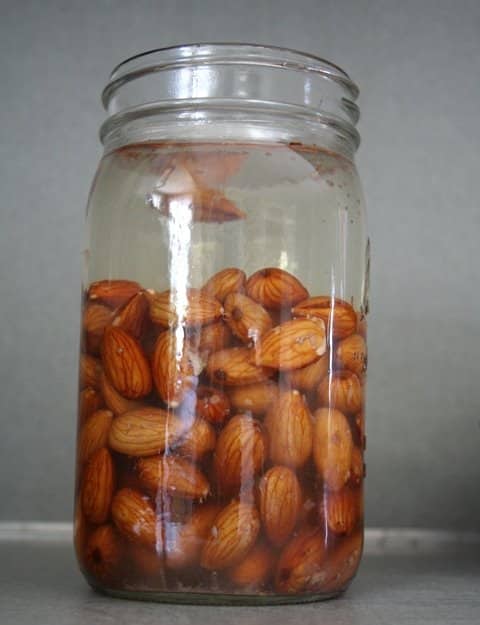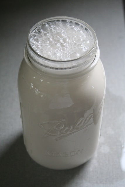 My mother-in-law, who eats nearly a 100% raw diet, showed me how to make almond milk when they were visiting. It turns out to be quite a simple process. I make it once or twice a week now. It’s so much richer and creamier than the stuff you buy at the store, and of course, still has all its good enzymes because it’s raw. And somehow, things you make yourself just taste that much more delicious!