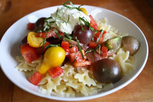 Pasta with Raw Tomato Sauce and Ricotta