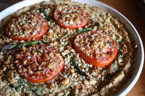 Use whatever pie crust suits your diet. I like Elana Amsterdam’s Herb Crust. It uses almond flour so also boosts the protein content. You can also substitute other veggies for the asparagus, using whatever is in season. I could picture broccoli being pretty tasty around this time of year. Or spinach.