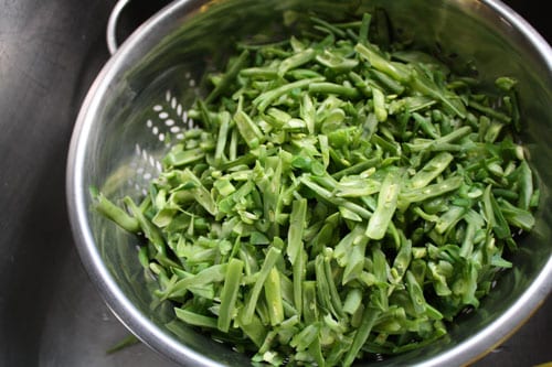 Green Beans I like to do a quick blanch in the steamer and then freeze. This year I’m “frenching” my beans before I freeze them. My family really enjoyed this method of Sally’s and this will make my freezer to table time even faster.