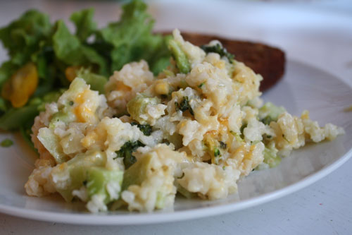I made just some slight alterations based on my own food principles. We used soaked brown rice (a la Sally Fallon), and butter instead of the margarine.