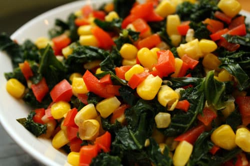 The folks around our dinner table were just about split on their preference of it–half liked it, half did not. The Pickle spent 15 minutes separating out the peppers and corn (which he liked) from the kale (which he did not like) and then eating them independently. If you’re not a fan of kale then you could substitute a less bitter green. Try spinach, collards, or chard.
