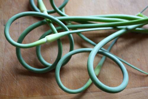 - 3 garlic scapes sliced thinly