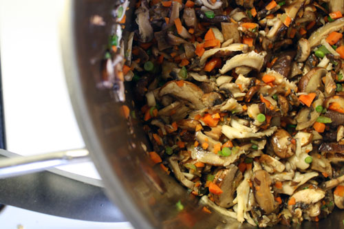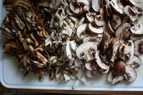 Really you can use just about any combination of mushrooms. We have different ones available depending on what time of year it is. I just used the ones that I could find that week, a combination of dried shiitakes, maitake, and cremini mushrooms.