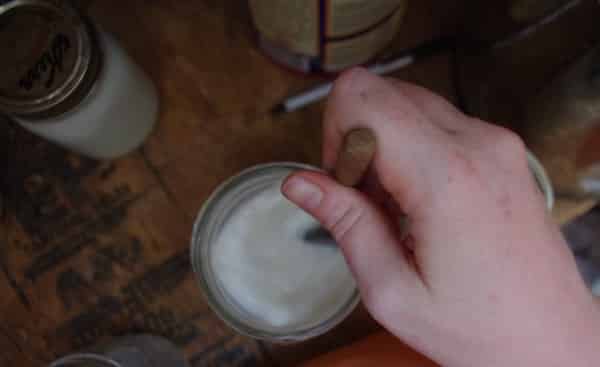 - Add packet of starter culture to one quart of cow’s milk (raw or lightly pasteurized) or two cups of goat milk. I honestly don’t know why there is a discrepancy in the amount of milk needed to make your first batch with the starter, I just know that using 2 cups of goat milk worked for me so I’ll continue with that.