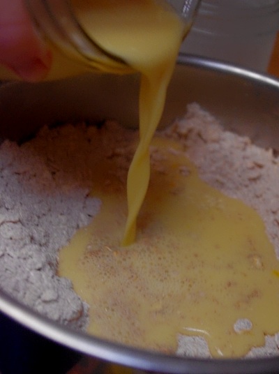 - In a small bowl beat eggs. Add honey and mix well to combine. Add milk, vanilla, and melted butter and mix until combined.