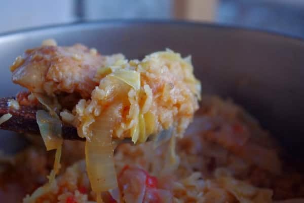 I should probably note that whenever you’re cooking rice with other things the liquid ratio is the trickiest part. So if you find your rice under-done and the dish dry after the cooking time is up, just add a 1/2 cup of water, cover and finish cooking.