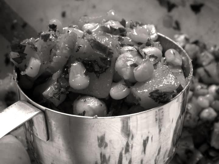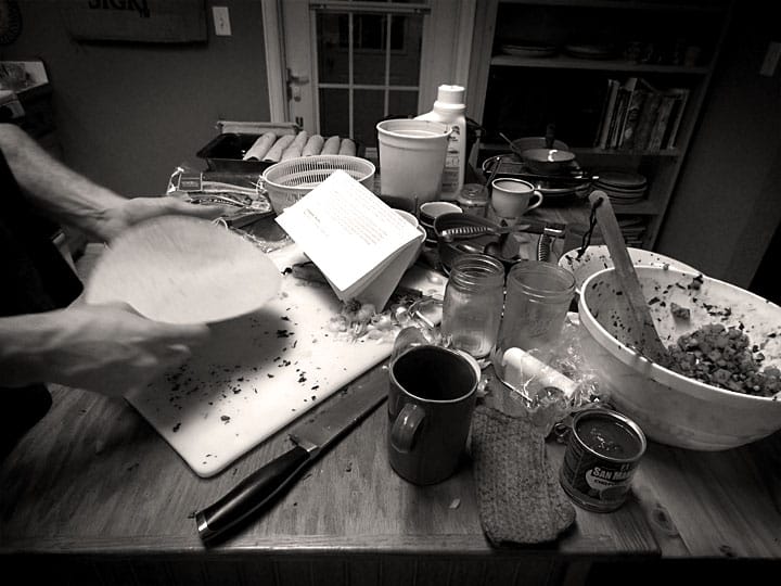 With the boys in bed I sat by the fire with my mortar and pestle and ground up 5 tablespoons of ancho powder. And it was a delight. But it took me 20 minutes. I worked till 11:00 pm preparing the meal, and I still needed two hours the following evening for final preparation and cooking. Again: mercy.