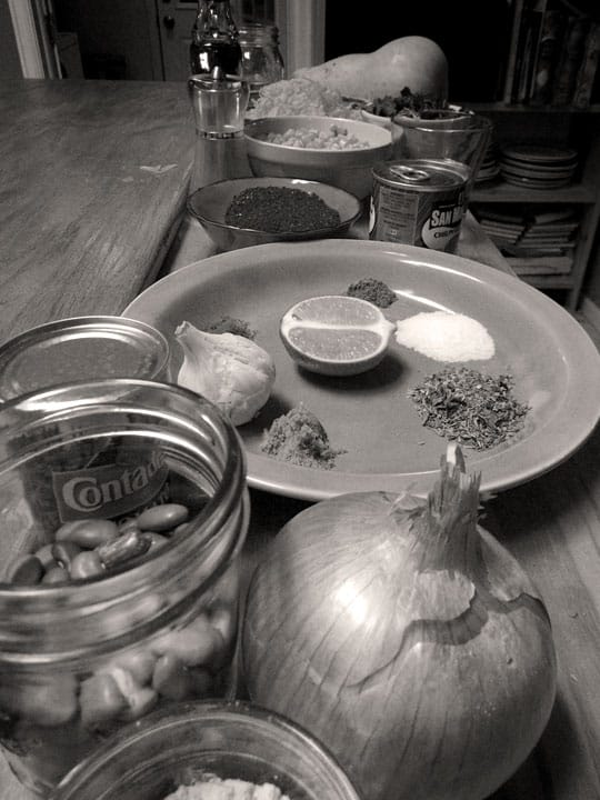 But I will say this: I do not regret attending to those peppers. I will not forget the scent they unleashed, or the gift of time to sit in quiet and let some thoughts sift upward. I was lucky enough to grow the butternut squash I used in the dish, and I do not regret attending to that unwieldy gourd, remembering how we planted them too late and longed for a late frost.