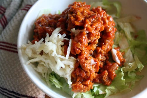 The family enjoys this on hamburger buns, while I eat it over a bowl of shredded lettuce as a grain-free option. It would also be delicious over rice, for a gluten-free dinner.