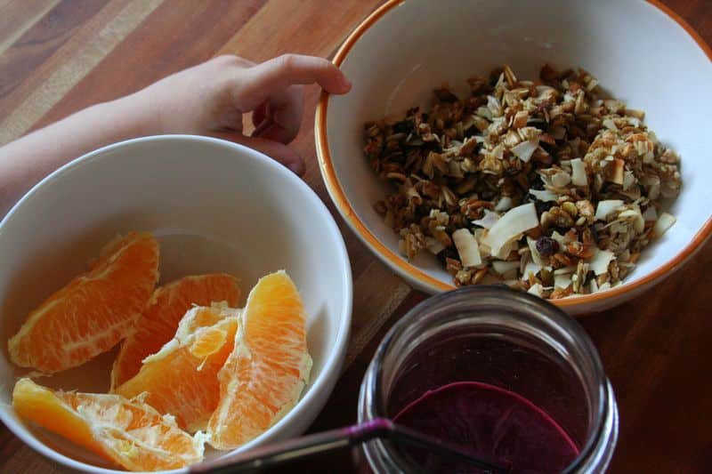 Awhile ago our family did the GAPS diet, which means no sugar and no grain (among other things). I thought I would miss sugar the most, but that wasn’t the case at all. I was actually pretty okay without it. I think it might have to do with the huge amount of probiotics I’d been consuming. Has anyone else experienced this? A reduction in sugar cravings when you eat more probiotics? But I did really miss starches and grains. So, this recipe for GAPS granola was a lifesaver. And it was a hit with people not even on GAPS!
