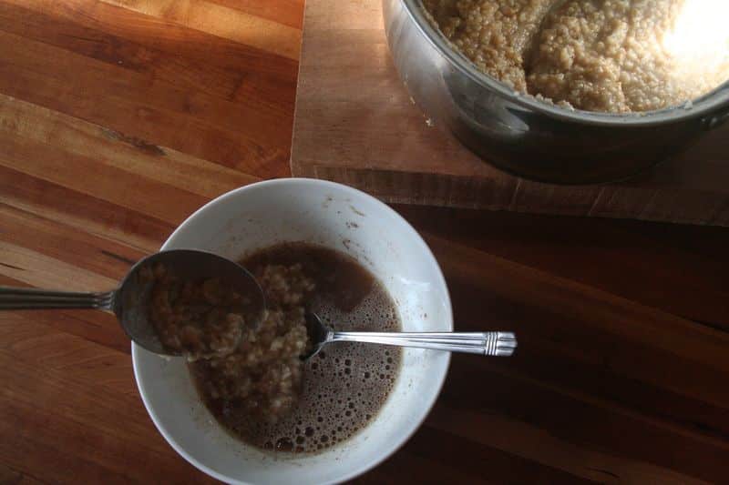 It’s like custard oatmeal! I like adding the cooked oatmeal to the egg so that it doesn’t get very cooked. I think raw eggs are healthier, and did you know you actually have a better chance of winning an Academy Award than getting salmonella from a raw egg? I read that somewhere, it’s probably true 🙂 And your chances are vastly better if the eggs are from your own chickens. But, if you were worried you could stir some hot oatmeal in, then transfer the whole thing back to the pot until you felt it was all cooked through.