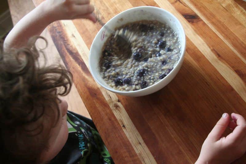 My sweet little boy is a string bean, just like me and just like his dad. But sometimes, because I’m a mom and moms worry, I worry that he might not be assimilating all the nutrients and getting the most out of his food and maybe his string bean legs are due to more than genes.* So, when his favorite foods are filling, but not particularly nutrient-dense, like oatmeal, it makes me nervous. So, I gave his favorite morning meal a little boost and it turned into everyone’s favorite way to eat it!