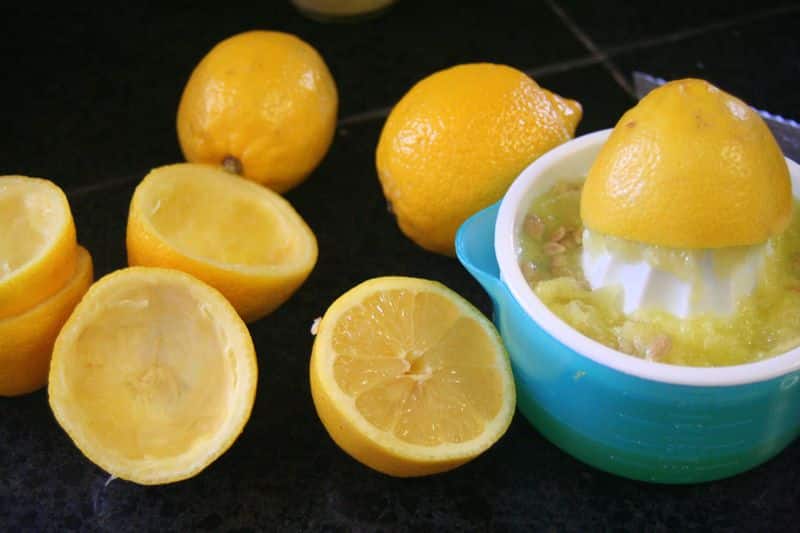 - Juice the lemons into the pitcher and add the honey (I just eyeballed it).