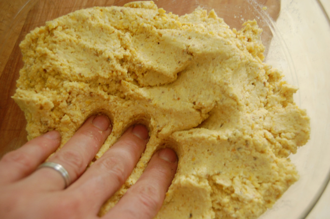 This dough definitely had more character than the Bob’s Red Mill brand had. Here are the two doughs side by side (home ground corn on the left):