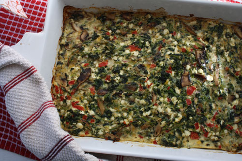 I wasn’t quite sure what I’d be pulling from the oven with this recipe. A casserole is, after all, somewhat of a hodge-podge of ingredients dumped into a dish and baked. There are a thousand different ways a casserole could turn out. Allow me to clarify for you. In this case, the “casserole” is something of a creamy frittata. It is sliceable, not spoonable. It is tasty warm, cold, or at room temperature. And it is delicious. My kiddos especially enjoyed the addition of the cottage cheese, which gives it more of a creamy casserole texture, rather than an egg-y frittata.