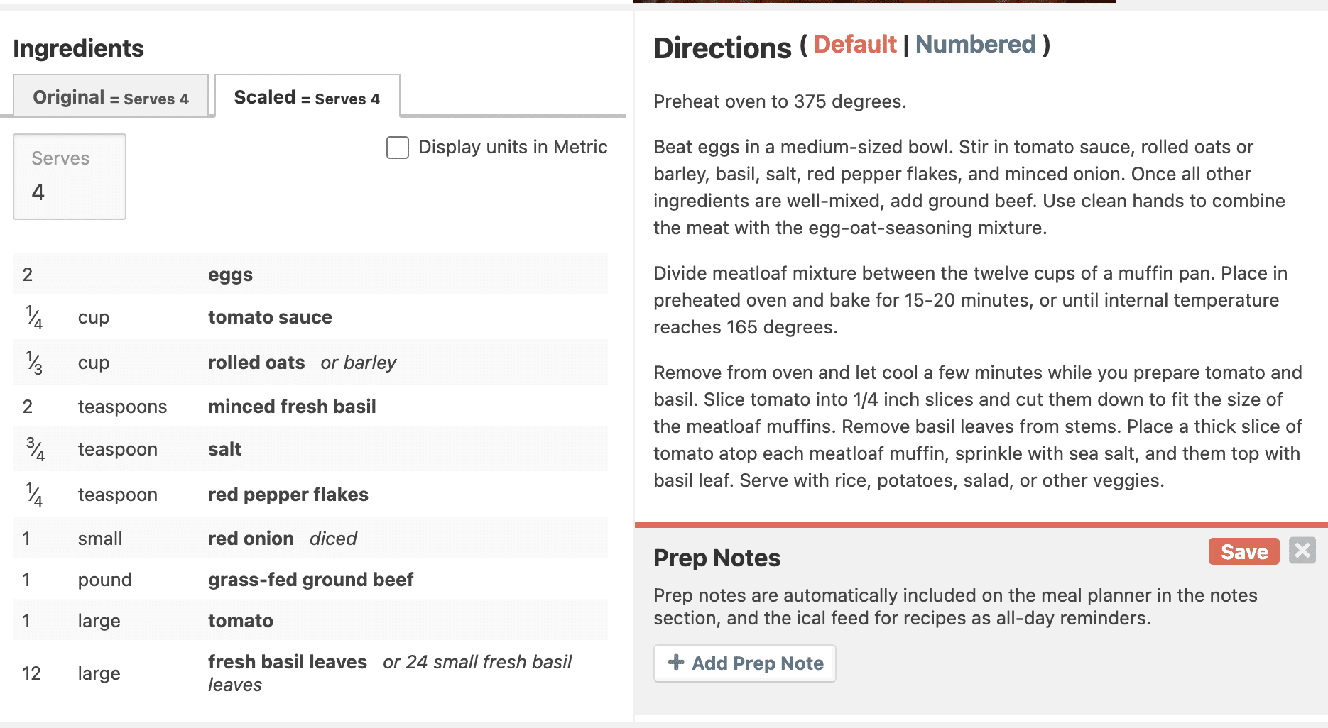 Press the Save Recipe button after entering your Prep Notes and they will be added to the recipe, listed in the order in which they occur.