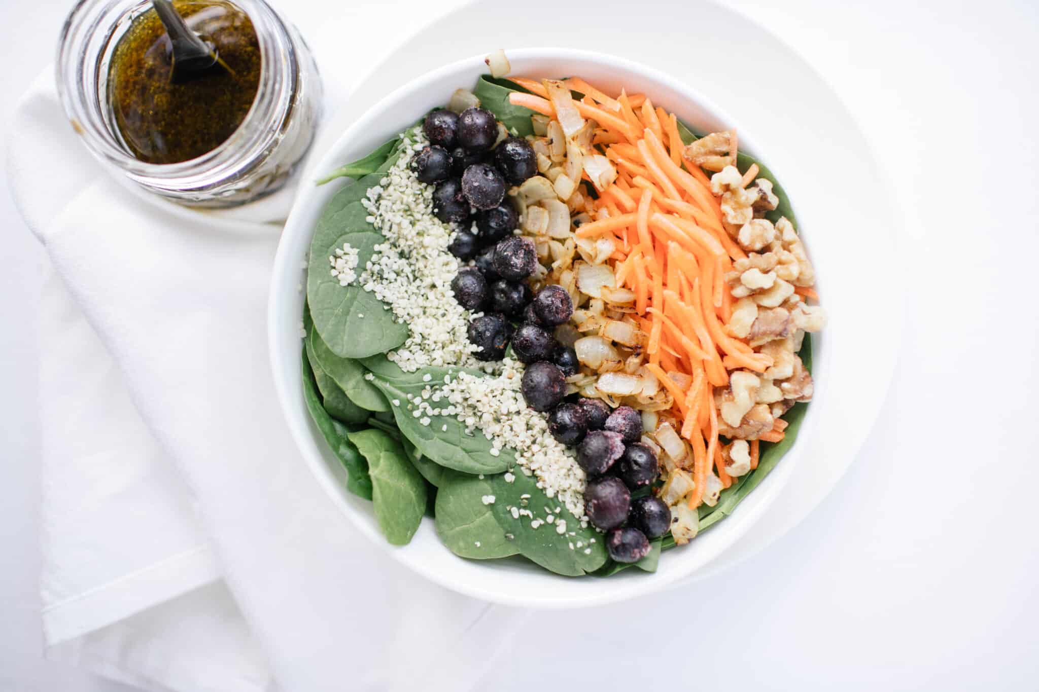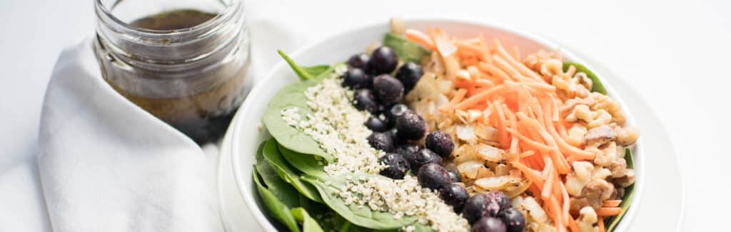- In a small bowl or mason jar, combine dressing ingredients and whisk or shake until combined.