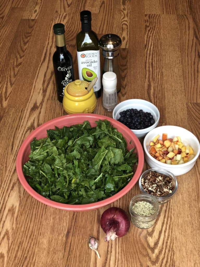 - Rinse arugula and spinach and spin or pat dry.