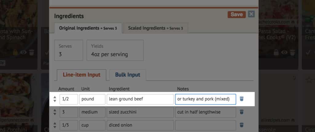 You can add notes into your recipes to help give yourself suggestions for alternate ingredients. Simply open a recipe, click to edit, and then add your notes into the Notes section located to the far right of the ingredient name. Just like in Sara’s example, make a note to use ground turkey and pork instead of ground beef if you’re trying to mix up your proteins! Have a recipe that calls for sour cream? Make a swap and add a note to use greek yogurt!