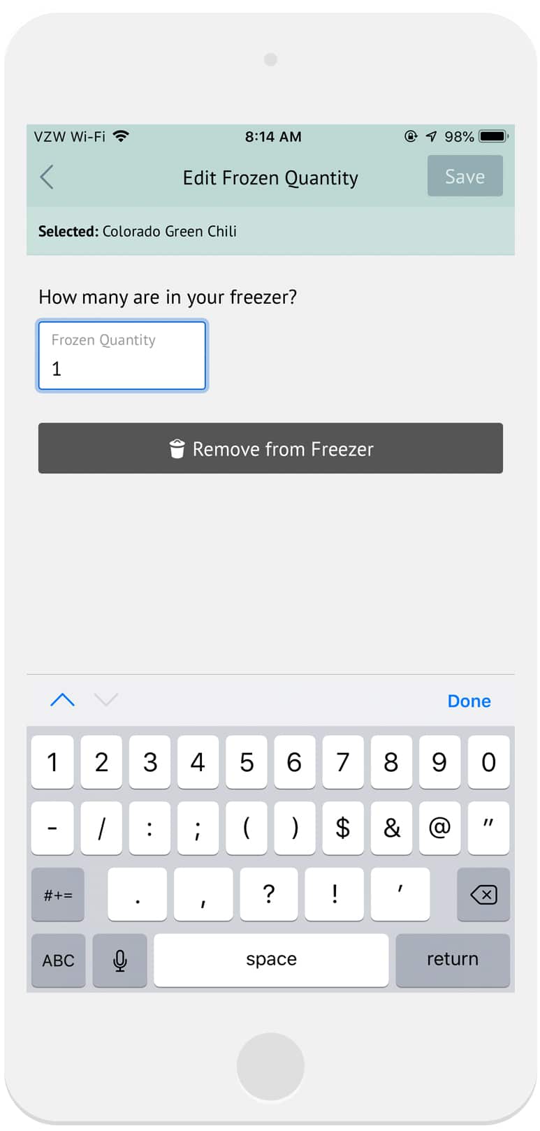 1. From the Freezer section, tap on the frozen meal you want to adjust.
