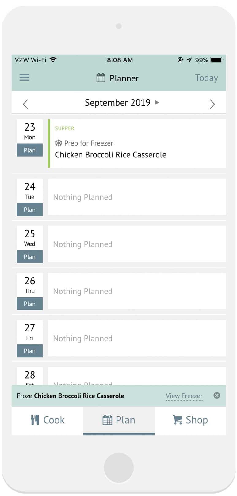 Plan Frozen Meals from your Planner: