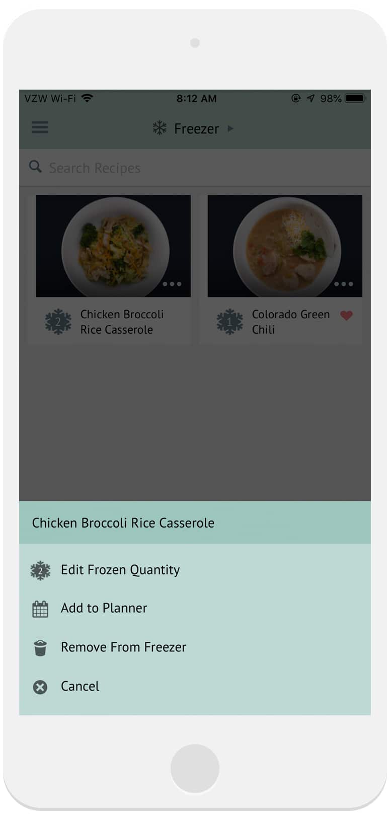2. Tap Edit Freezer Quantity and adjust the number of meals saved for that recipe.