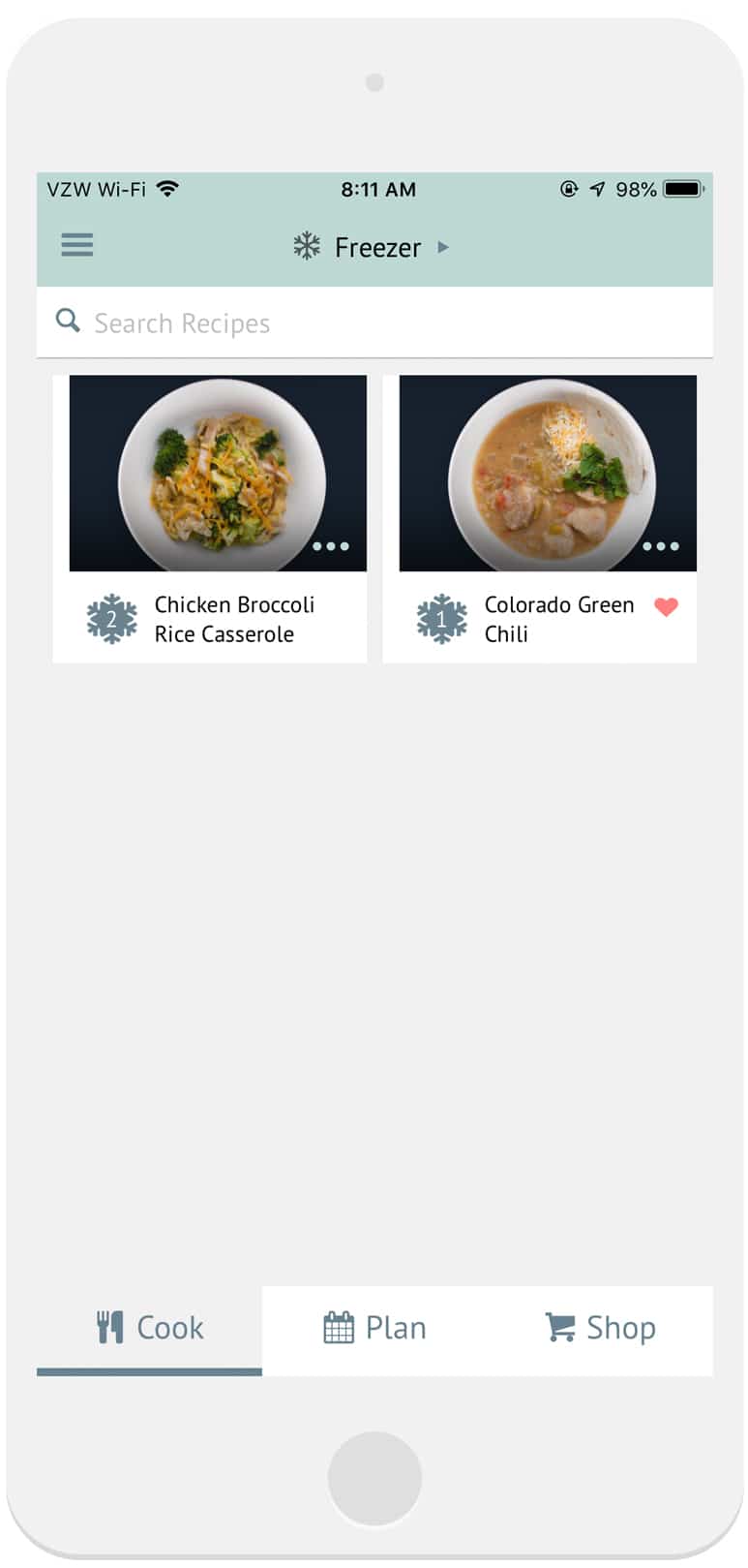 This feature will allow you to access recipes you already have frozen if you have been using our website. Just like your recipe book, meal plan, and shopping list, all of your freezer meals will sync with your app. In addition to viewing your frozen meals, you can freeze new recipes, add frozen meals to your planner, and edit the number of servings sizes for recipes you have frozen. The Freezer elevates your meal planning by allowing you to freeze leftovers or make double portions, which means less cooking in the future. We love anything that brings some simplicity to our meal planning process and making meals ahead of time is a great trick for this!