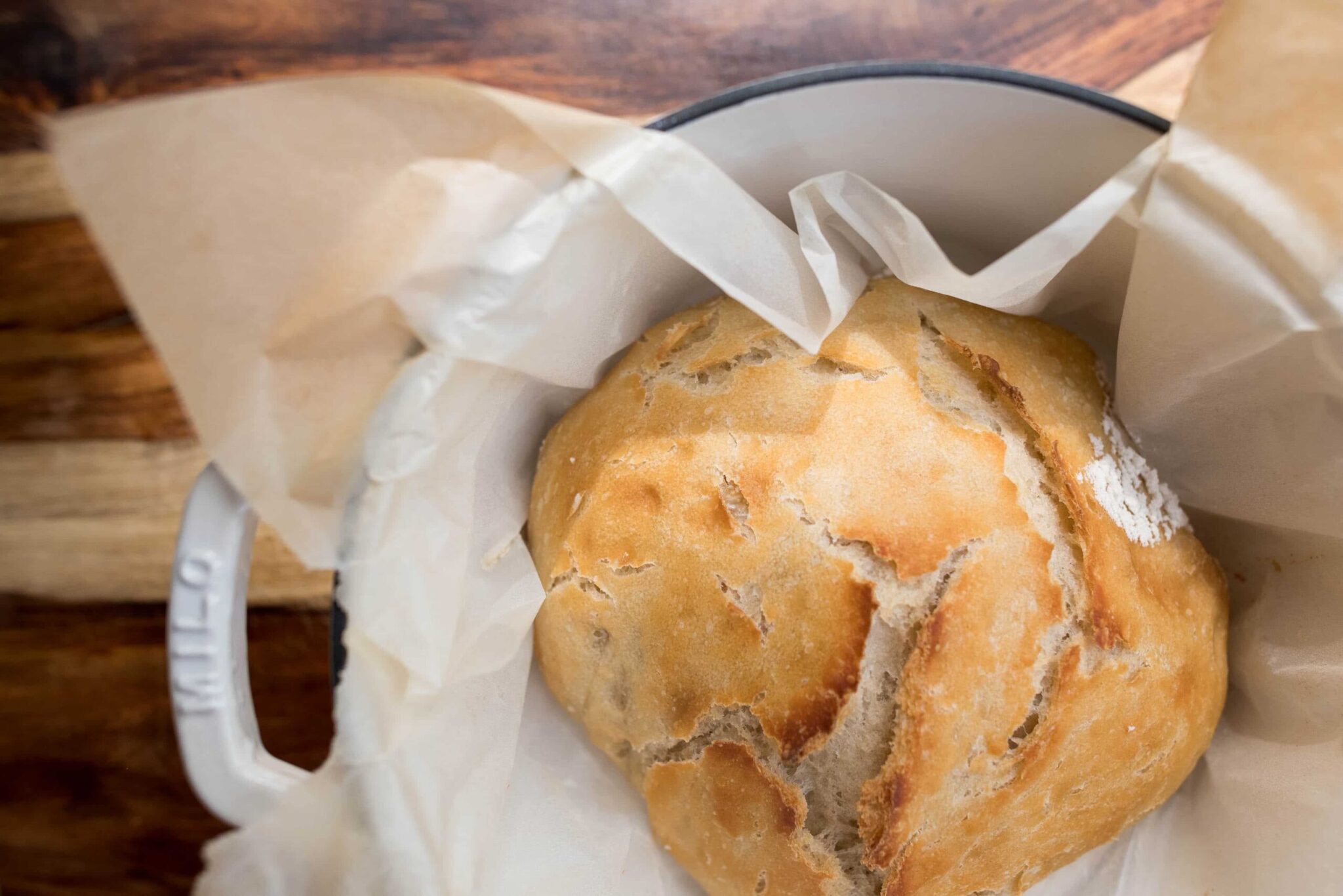 We baked a no-knead sourdough loaf in the small dutch oven. The bread came out perfectly baked with a delightfully crispy exterior. A little butter on a slice of this bread was heaven!
