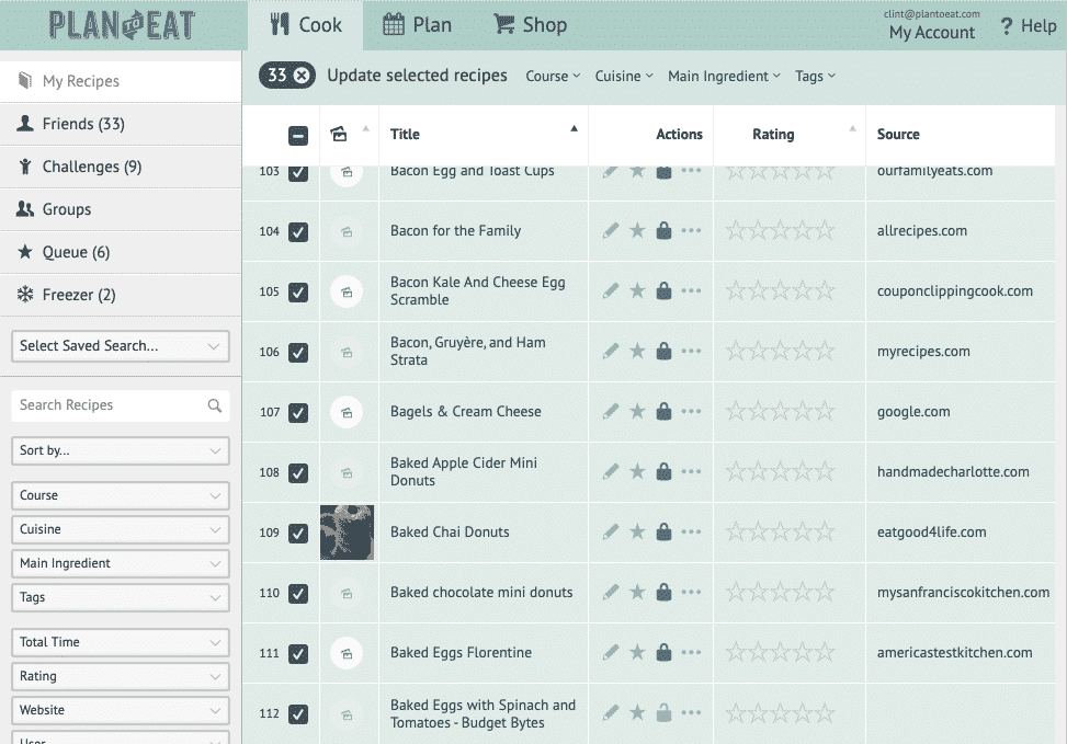 Bulk Editing Recipes allows you to select multiple recipes and make changes to the entire selected group all at once.