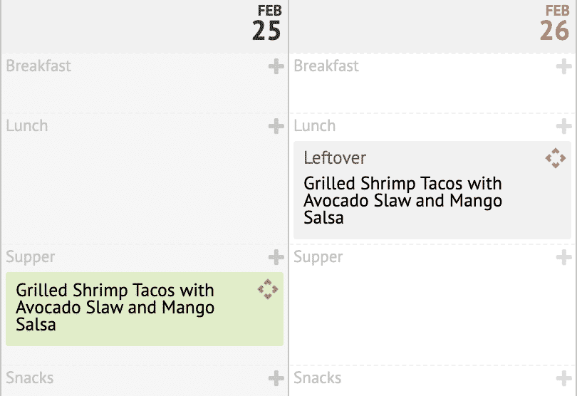Planning Leftovers: You no longer need to use a workaround to plan your leftovers. Simply click on a planned recipe to access the “plan as leftover” button.