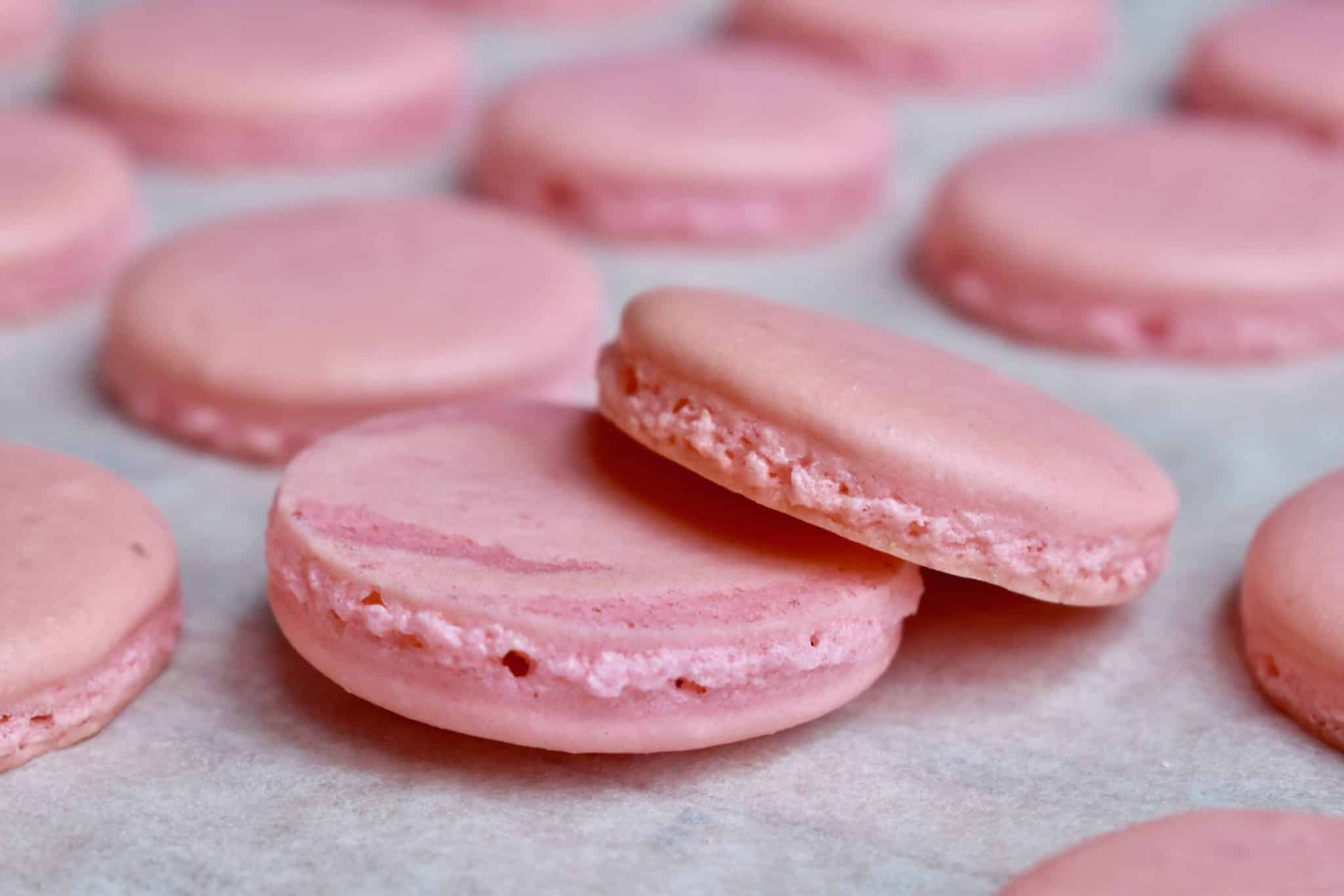 Let the macarons rest for 30 minutes to an hour before baking. They will form a sort of film on top and you should be able to brush your finger across the top without indenting. All of these steps we are taking will help to ensure we have nice “feet” so that the macaron rises properly!