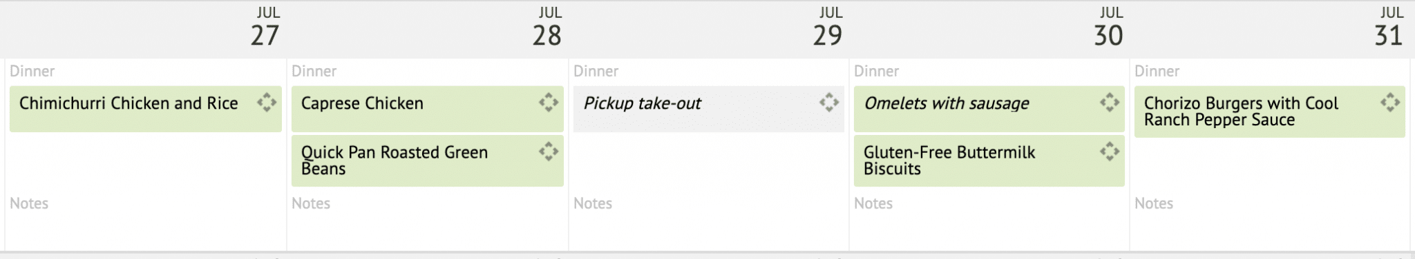 While my husband is an excellent cook, he was just as tired as I was and he was grateful to know there was food prepped and ready for us. All we needed to do was pull them out to thaw so they were ready to go into the oven for an easy dinner. Since the Plan to Eat freezer offers defrost notes, we never forgot what meal to pull out each day and were never stuck with a totally frozen dinner when we were ready to eat.