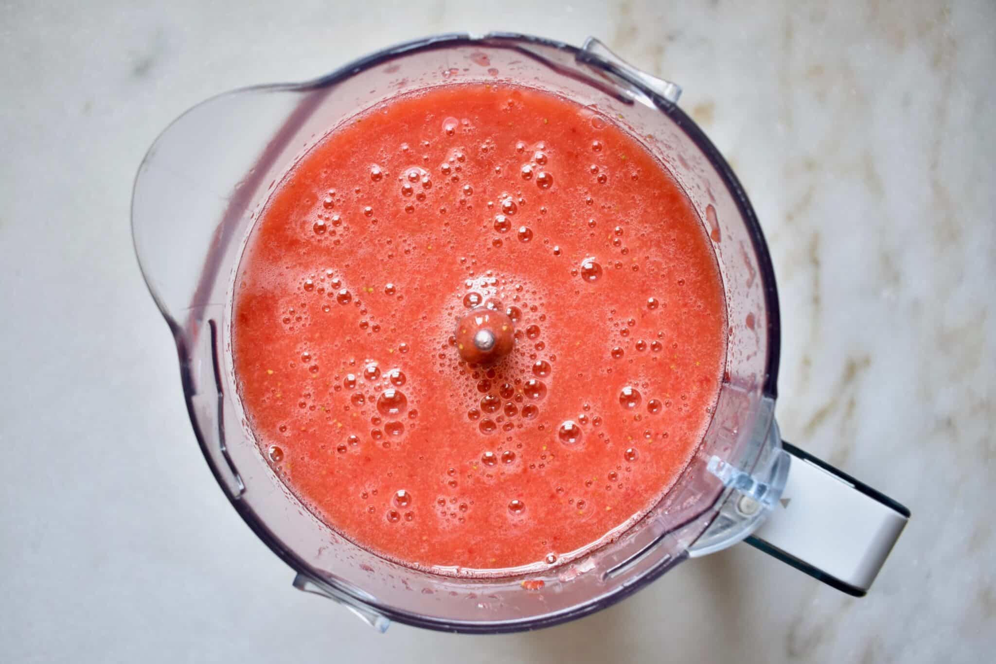 Then, using a blender or food processor, finely grind the almonds. Add the flour and salt to the blender and pulse until well combined. Set the almond flour mixture to the side for a minute.