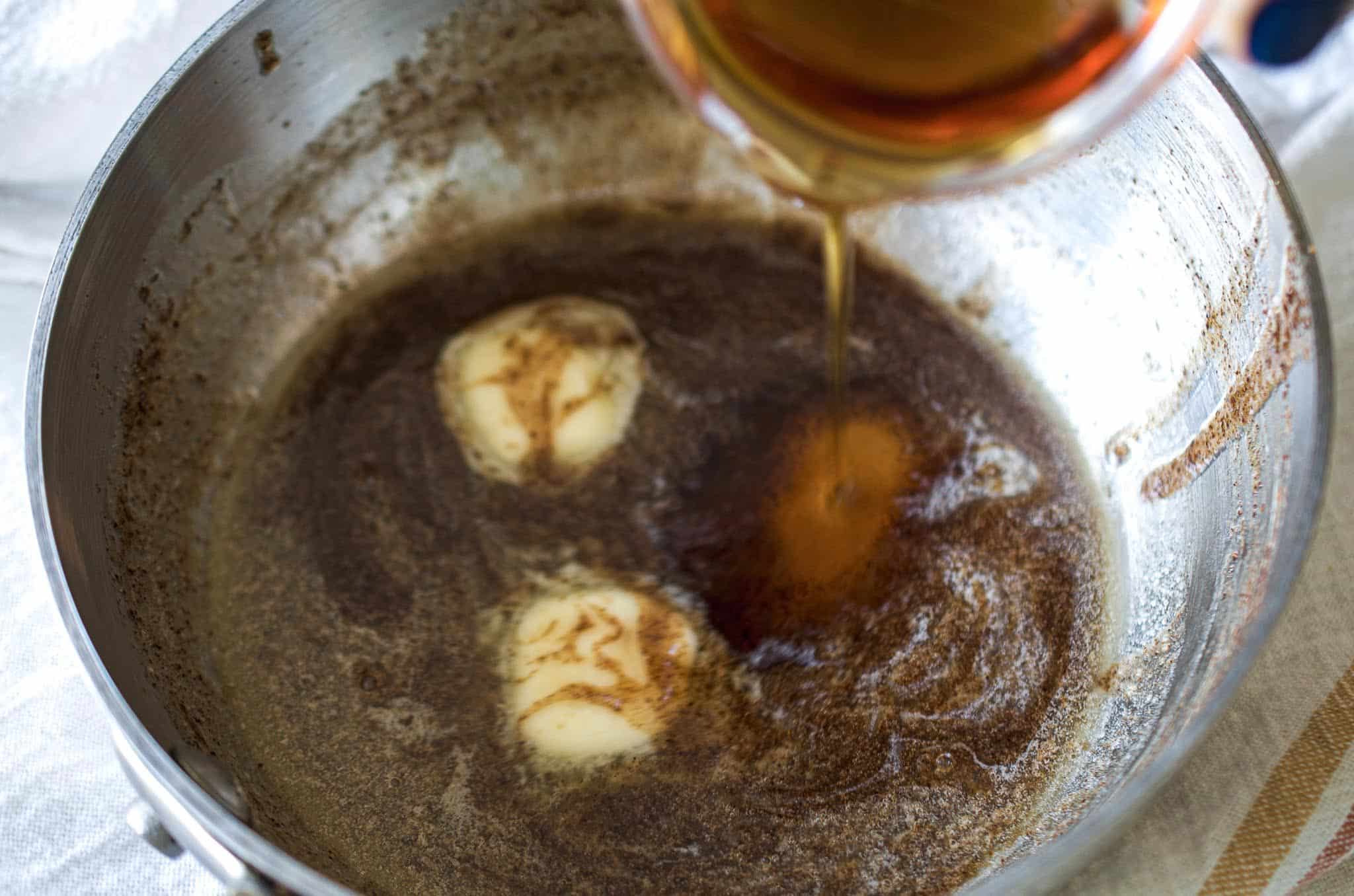 - Make the maple cinnamon syrup by combining brown sugar, water and cinnamon together in a small saucepan over low heat. Cook for about 3 to 4 minutes until it’s syrupy, stirring occasionally. Take it off the heat and stir in the butter and maple syrup. Transfer to a bowl and place this in the refrigerator as well.