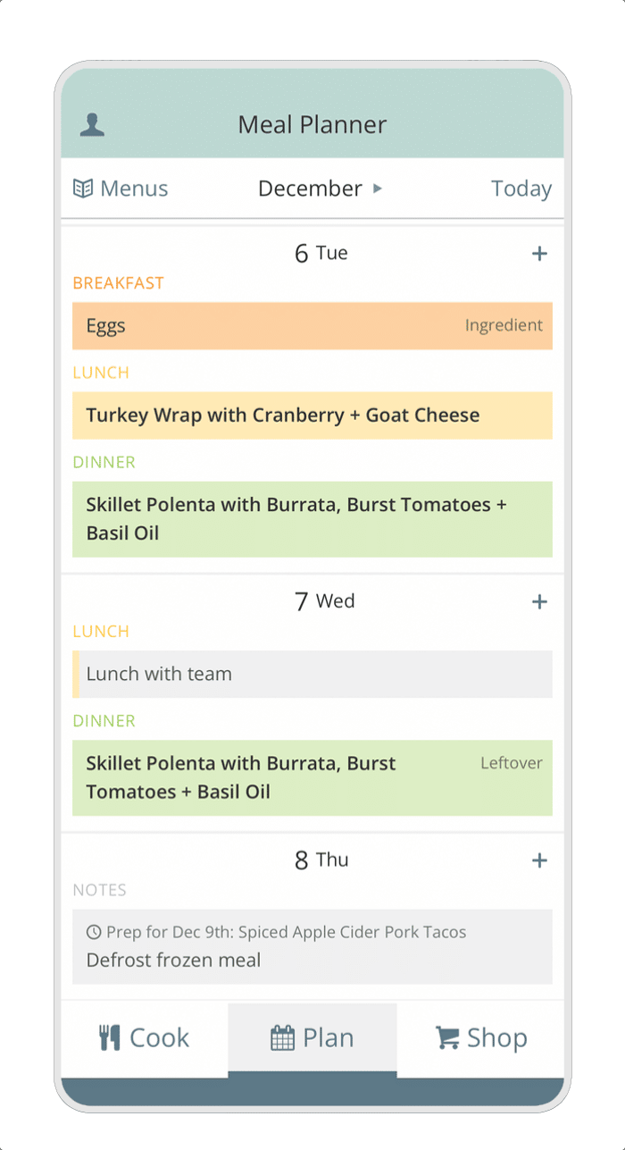 We updated the look of our Meal Planner on the mobile app! This update creates the framework for new features coming in 2023, like drag-and-drop planning, bulk editing planned recipes, and nutritional data.