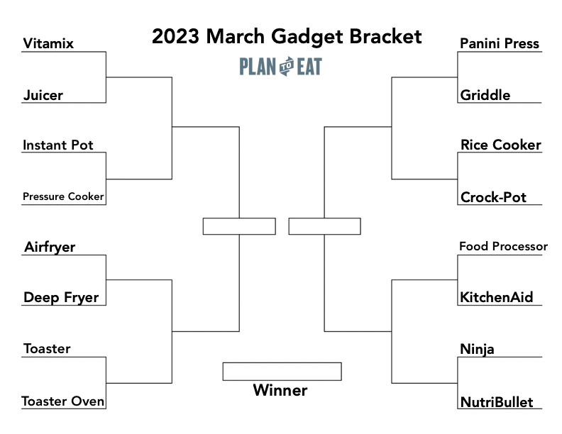 There will be four rounds of voting to determine the number one kitchen gadget. Each Monday in March, you will be emailed an updated bracket with a link to vote in the next round. You will have until Thursday of each week to submit your votes before the next bracket is created.