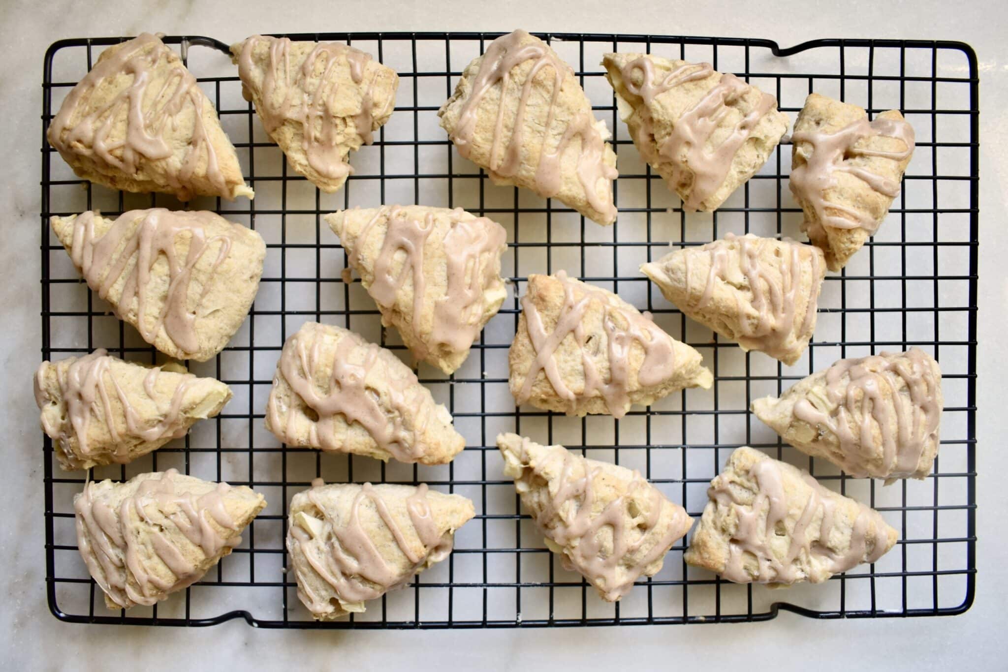 - After taking the scones out of the oven, drizzle with the glaze and enjoy!