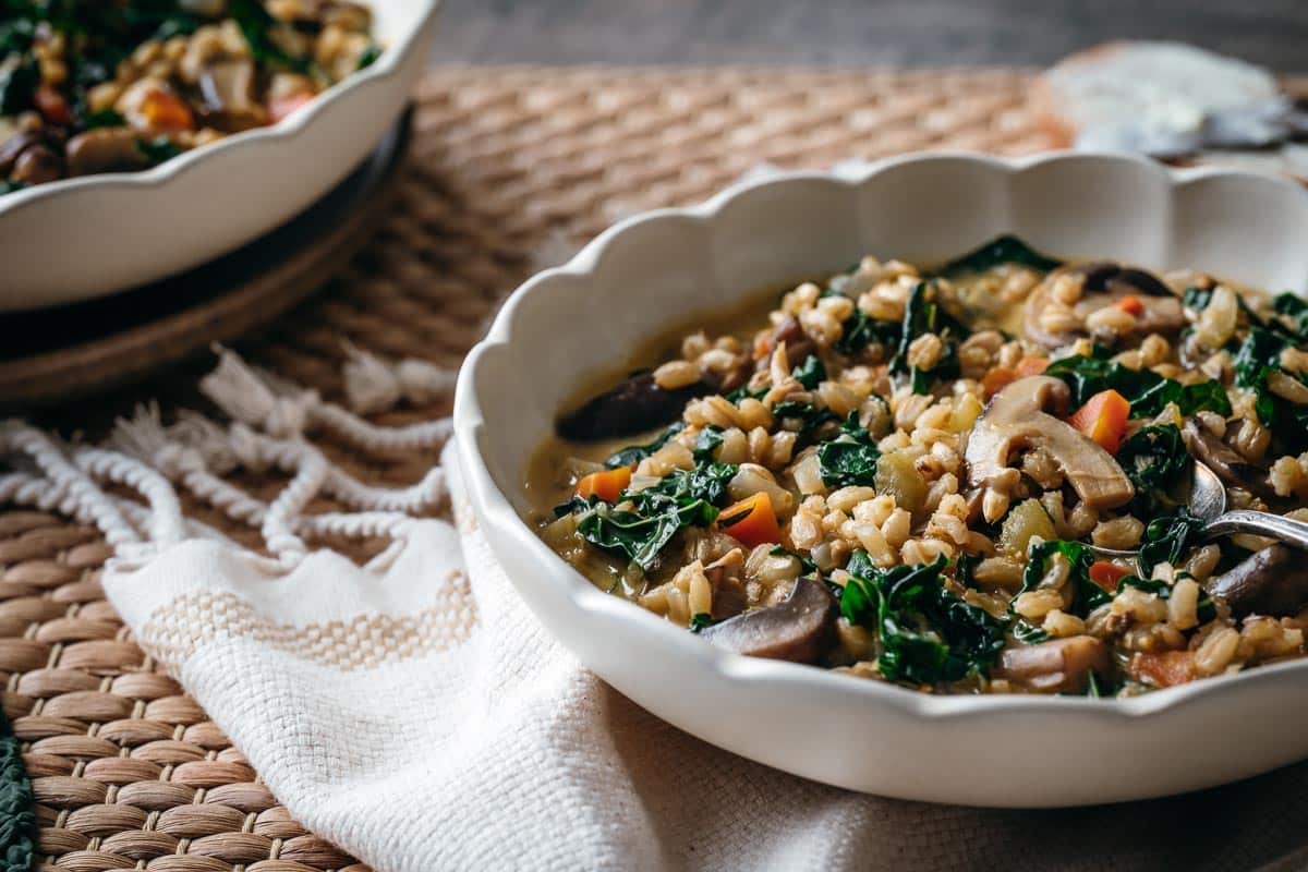 Creamy Mushroom, Barley, and Kale Soup Recipe