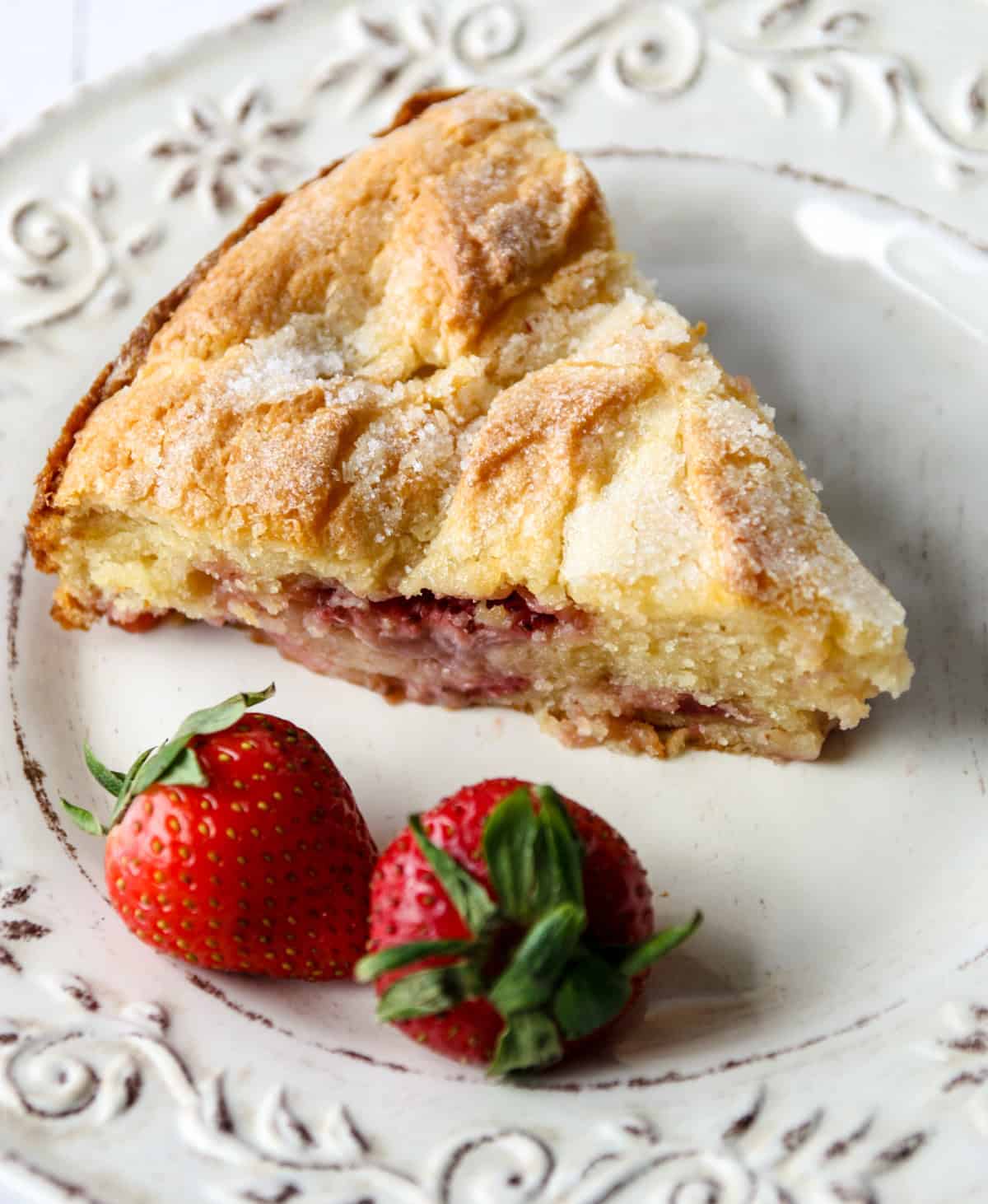 French strawberry cake is delicious as is with a cup of tea, coffee, or a glass of wine. It also makes a perfect spring or summer dessert when topped with a scoop of vanilla ice cream or whipping cream. We love this especially as the finishing touch for summer dinners like grilled chicken, or summery shrimp salads.