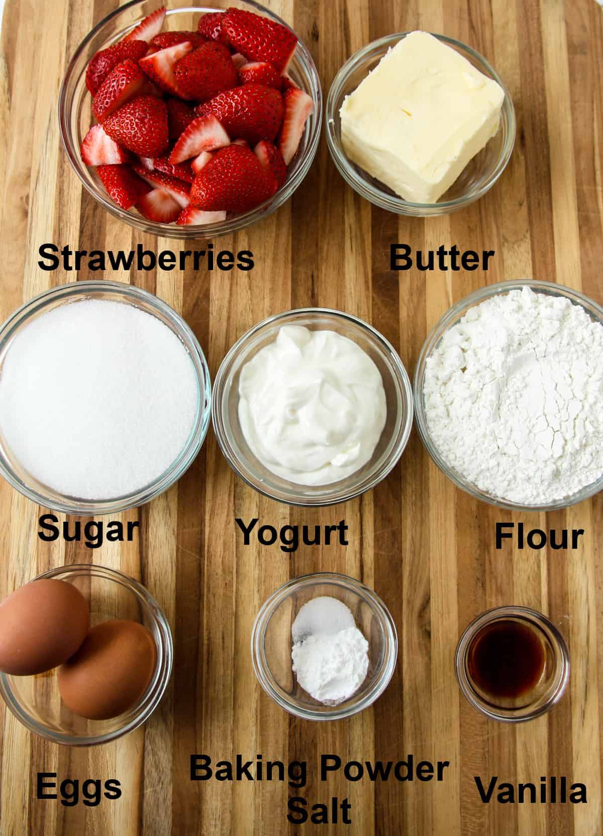 - Strawberries: Fresh strawberries are a necessity here. Frozen strawberries will add too much moisture to the cake. Look for fresh, ripe strawberries.