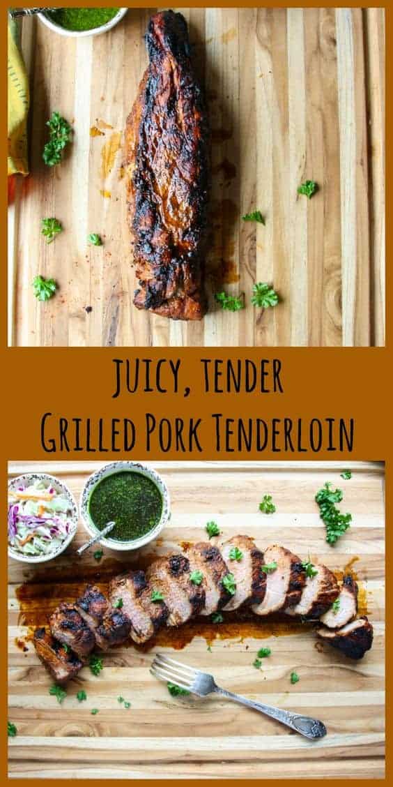 We really like to toss together some coleslaw, like this Fennel Cabbage Slaw to serve with grilled pork. And one of my favourite sides for this tenderloin is Shaved Brussels Sprouts Salad With Apples. If you're looking for a heartier side dish, try Potatoes Au Gratin or Miso Baked Sweet Potatoes. Also, try drizzling this grilled pork tenderloin, or any, grilled meats with this delicious and super simple Chimichurri Sauce. If you have some parsley in your garden, this sauce is a great use for it. But if you don't, it's worth buying some fresh parsley to make it.