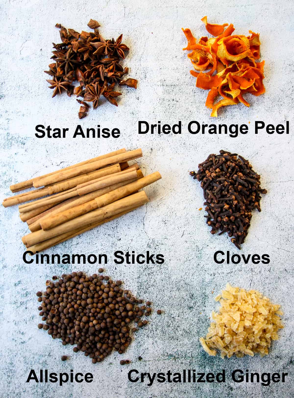Ingredients for mulling spice blend