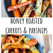 Honey Roasted Carrots & Parsnips are a delicious, easy side dish that works great with any meal. You can serve these roasted root veggies with a roast dinner, a weeknight meal, or a holiday feast like Christmas dinner.