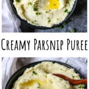- Greek yogurt: I love to use Greek yogurt in recipes instead of heavy cream or sour cream. (This creamy salmon spinach pasta, for example). Not only is it more nutritious, but the yogurt gives these creamy pureed parsnips a delicious tang. And it still keeps the recipe rich and creamy. However, feel free to replace the yogurt with an equal amount of sour cream, heavy cream or half and half, whole milk, or skim milk. If you do use any of these replacements, I recommend adding a tablespoon of fresh lemon juice to get that lovely tanginess.