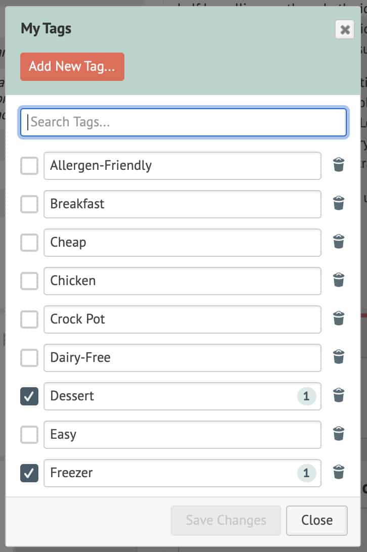 We also improved category selection for individual recipes by adding the ability to select recipe categories in the existing manage category modal. This change allows you to select multiple tags for your recipe at one time, instead of having to select/add one tag at a time.
